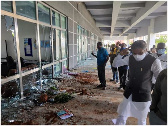 据《经济时报》报道,12日晚间在讷尔萨布尔工业园区,有近2000名员工上完晚班准备离开纬创资通工厂之际,许多人开始制造了打砸暴力事件。厂区高管办公室、工厂设备、家具等遭到打砸破坏,并且纵火焚烧厂内多部车辆,遭铁棍击碎的门窗玻璃散落一地,现场一片狼藉。
