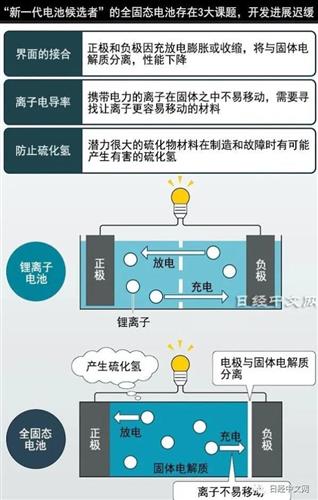 不过,《日经中文网》在一篇最新的文章中最新指出,全固态电池最初被期待在2020年代前半期就搭载于纯电动汽车,但开发速度缓慢,目前看来,其量产仍然需要迈过三道难关。