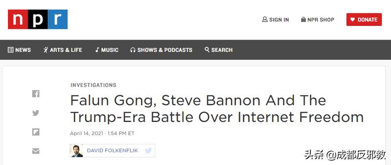 文章说,在特朗普白宫团队对美国联邦政府进行的所有干预中,一个名为“开放技术基金”(译注:Open Technology Fund,该基金是美国支持世界各地“颜色革命”的工具之一)的小项目所引起的一连串事件最为突出。出场这个魔幻般故事的,包括“法轮功”运动、前白宫战略家史蒂夫·班农、已故民主党众议员汤姆·兰托斯(Tom Lantos,犹太裔)的女儿卡特里娜·兰托斯·斯威特(Katrina Lantos Swett)以及前总统特朗普任命的一位狂热官员。