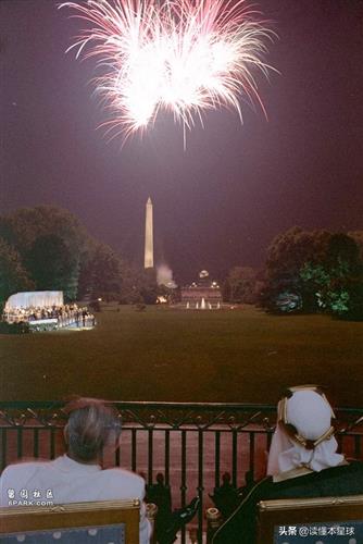 ▲1966年美国时任总统约翰逊与沙特阿拉伯国王在白宫观看烟花表演