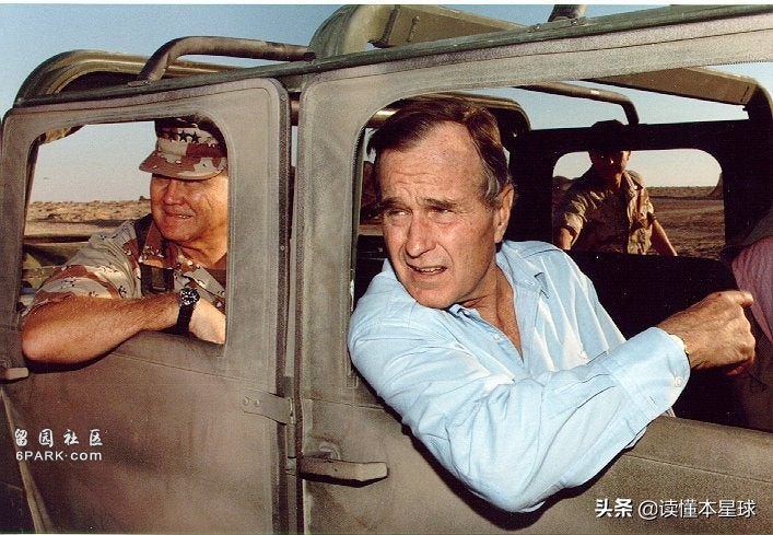 ▲1990年美国总统布什视察在沙特阿拉伯的美军