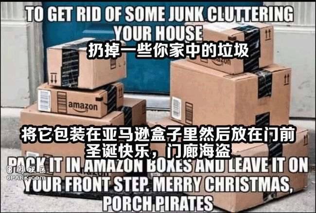 一些网友发表情包,号召大家把垃圾打包进亚马逊快递包裹放在门口,送门廊海盗一份“圣诞礼物”。