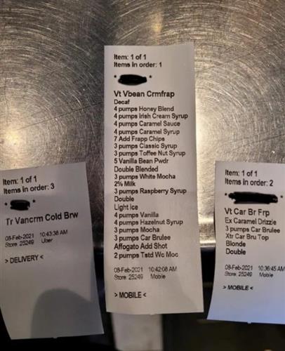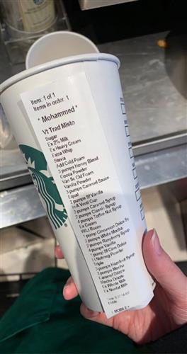 星巴克员工上传了这样一张照片,