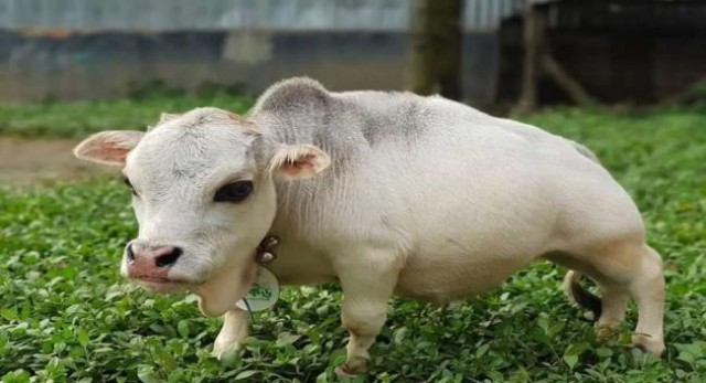孟加拉首都达卡附近农场一头23个月大的小牛,近日成为网络热话。牠身高只有51厘米,身长66厘米,仅26公斤重,吸引不少人前来一睹其可爱的迷你身形。在短短3天内,就有超过1.5万人“朝圣”。