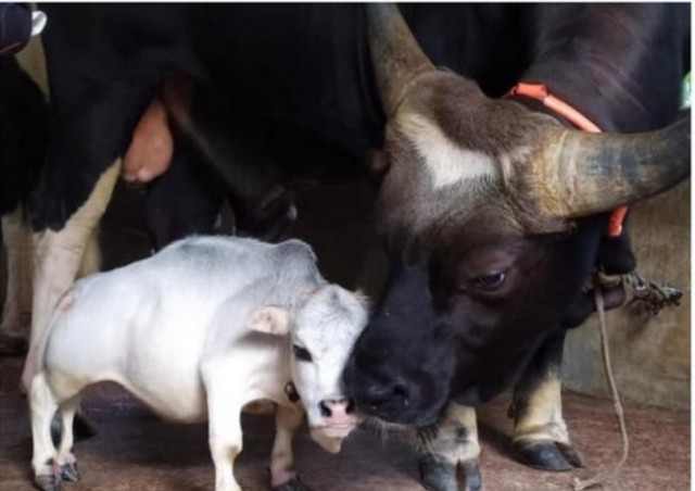 该农场的经理霍拉德(Hasan Howladar)表示,这头罕见的不丹牛“拉尼”(Rani)出世后不久,他们去年便从瑙冈县另一个农场将牠买回来。