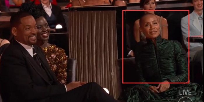 威尔史密斯妻子洁达·苹姬·史密斯(Jada Pinkett Smith)以光头形象现身奥斯卡现场,因为她深受脱发困扰而剃光了头发。洛克在台上主持时,便调侃了她的光头造型。笑称以为洁达在竞选《魔鬼女大兵2》角色。《魔鬼女大兵》是由黛米·摩尔主演的一部讲述女兵的电影,电影中的黛米·摩尔就是以光头形象出现。但在这里用来调侃因病脱发的洁达明显不太合适。