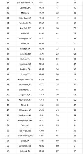 排名第四至第六的是密西西比州Gulfport、加州Fresno和德州Laredo。