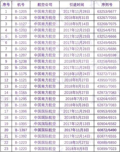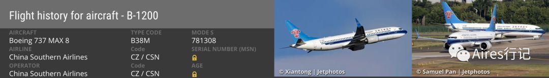 在国内登记注册的每一架飞机都会有一个编号唯一的机号用于识别飞机,这个数据可以在「民航休闲小站」网站上查到(网址:http://www.xmyzl.com)。但因为网站将737MAX8机型简称为「737-8」,模糊搜索后会和737-800机型混淆,所以搜索数据时,你可以输入该机型唯一使用的发动机型号「LEAP-1B」来获取机号名单。