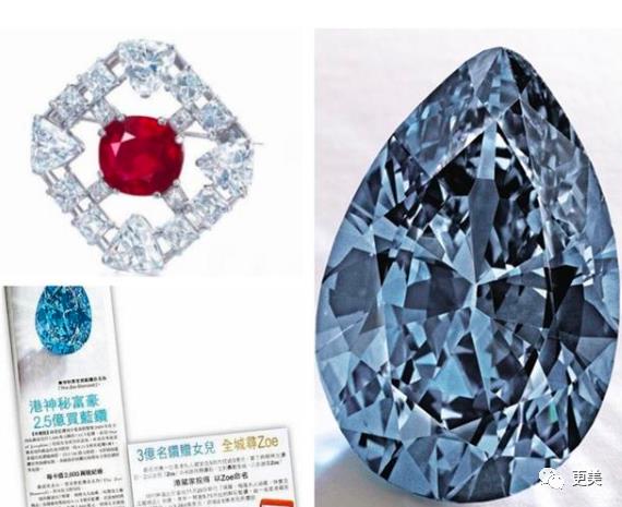 最轰动的是,大刘还连续拍下了两件珠宝送给女儿——2亿元9.75克拉的艳彩蓝钻、5000多万的钻石胸针。这两件