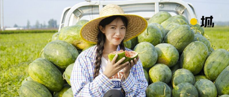 戴着宽檐草帽,扎两个麻花辫,麦小登拍了拍身后的一车瓜,捧起手里的西瓜吃了一口,最美“瓜二代”露出了醉人的微笑。