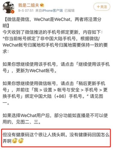 除此之外,网友们还提出了一系列疑问:还能用微信跟国内亲朋好友聊天吗?还能看到公众号、朋友圈吗?过年收的红包还能用吗?还能跟国内好友一起打游戏吗?没有健康码是不是就不能回国了?