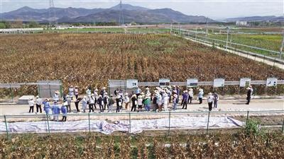 中国农科院作物科学研究所的生物育种实验基地中,一场新技术、新成果的观摩会在田间举行,吸引了很多专家和企业家观摩。 A10-11版图片/新京报记者 周怀宗 摄