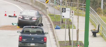 刚刚过去的周六(1月20日)下午,又有一位行人在本拿比Cariboo Road 靠近1号公路天桥位置的行人路上被汽车撞倒,肇事司机不顾而去。