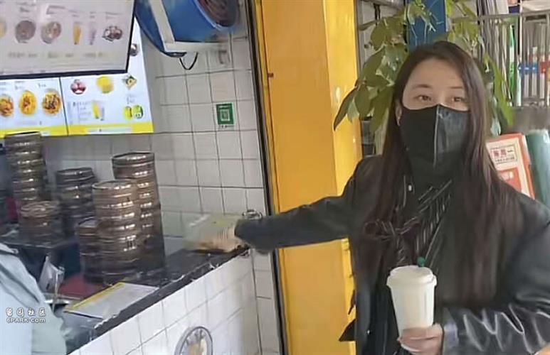 她低调现身路边摊,准备买一些包子吃,经过工作人员提醒,才想起自己准备去吃鱼粉,便离开了摊位。