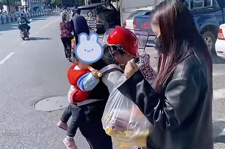 一位穿粉色上衣的路人怀中抱着孩子,她经过马苏身边时,只望着吃零食的小朋友,其他人也没有注意到大街上站着一位女星。