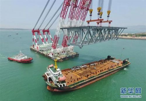 随着“大桥海鸥号”起重船将长80米、宽35.5米的钢桁梁稳稳地放置到墩顶,平潭海峡公铁两用大桥全桥非通航孔钢桁梁全部架设完成,为2019年10月开始铺轨奠定了坚实基础。
