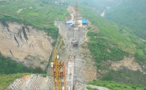 CGTN报道称,谷底河面距离施工点足足有150多米。
