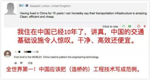 一位住在中国的英国网友真情实感地为中国打call:“我住在中国已经10年了,讲真,中国的交通基础设施令人惊叹。干净、高效还便宜。”