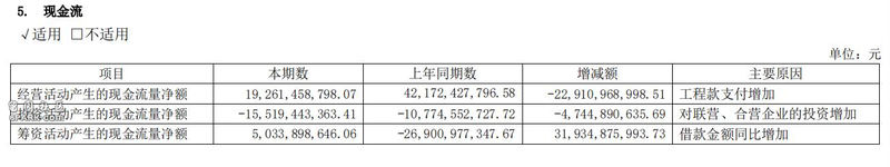 2019年,绿地筹资活动现金流净额为50.34亿元,同比增加319.35亿元。对于原因,绿地称主要是借款金额同比增加所致。
