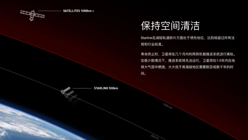 星链计划官网介绍,卫星寿命终止时,会利用机载推进系统进行离轨