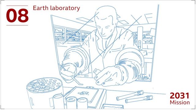 下面八张图解释了美国NASA和欧洲ESA合作将火星岩石和土壤样本运回地球的过程。