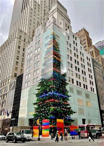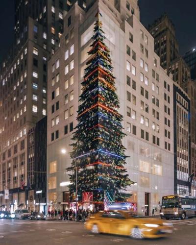 今年ins上最火的圣诞树,看来又被LV承包了。没错,地点就位于纽约第五大道的LV旗舰店。去年的梦幻紫色主题圣诞树就已经狠狠刷了一波存在感。