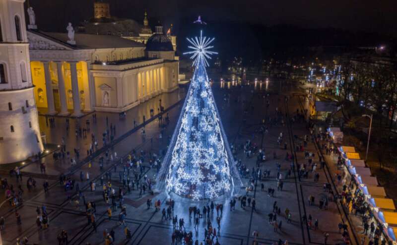 立陶宛维尔纽斯的圣诞树,可是屡次跻身欧洲和世界最美圣诞树之列的,地点就在大教堂广场。