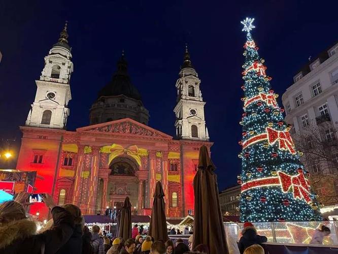 今年圣伊什特万大教堂前的圣诞树依旧很亮眼,老城区广场一片热闹。