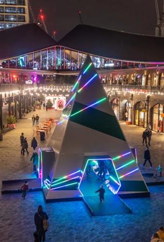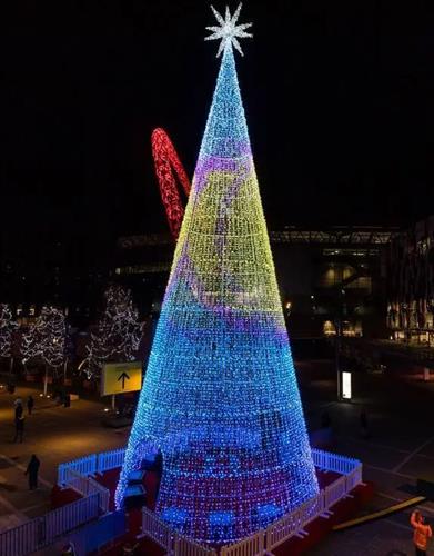而另一边King's Cross广场附近的圣诞树,绝对是今年英国最酷圣诞树之一。科技感十足,充斥着一股赛博朋克的味道。