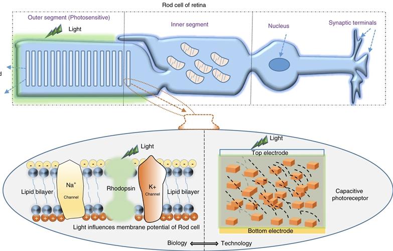 人类和其他哺乳动物的眼睛由于视网膜中的感光细胞(视杆和视锥)而看见东西,它们吸收进入的光子并向大脑发送电信号。这项新的研究中,沙特阿拉伯的鸭都拉国王科技大学(KAUST)的研究人员开始在一个人工设备中模拟这一过程。