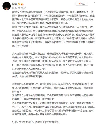 阿朵也发长文感叹团队运行的艰难并为之伤心难过,她特别提到:“为这些日子几次艰难的时期我没哭,但今天我看到两个我非常喜爱尊敬的团体解散的消息,一直坐在窗前眼泪一次次溢出来。”网友们也纷纷为这个消息感到无奈和惋惜,“艺术当然不死,艺术精神永在”。