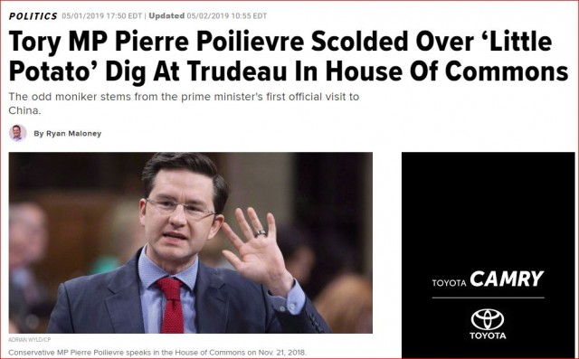 据Huffingtonpost报道,在加拿大众议院辩论过程中,保守党议员兼金融评论家 Pierre Poilievre 引用这个绰号攻击特鲁多,最后在议长连续喊停后他说:中国对这位“小土豆”不屑一顾,而他自己却把这个称呼当成赞赏。