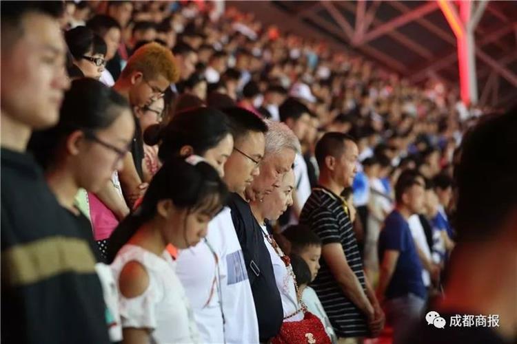 “为英雄默哀,向英雄致敬!”两位艺术家念完后,雨声里,体育场内寂静无声。