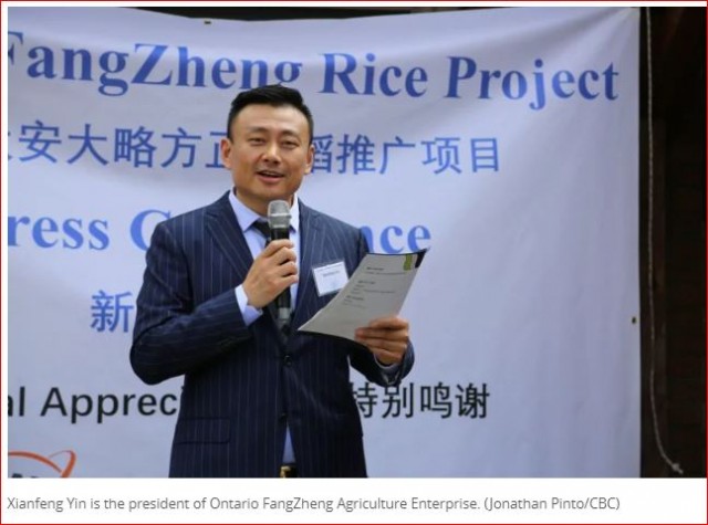 据农场经理张凯淇介绍,安省方正水稻种植项目是在2016年6月由加拿大安大略省驻华代表处宋毅军博士和安大略方正农业技术推广股份有限公司董事长尹宪峰先生启动、2016年9月1日在加拿大总理访华上海签约仪式上签署的稻米种植投资项目。