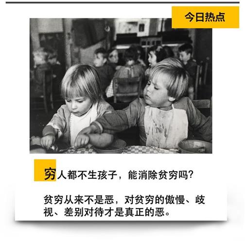 如果穷人都不生孩子,能消除贫穷吗?这个问题本身就是一只怪兽,贫穷从来不是恶,对贫穷的傲慢、歧视、差别对待才是真正的恶。