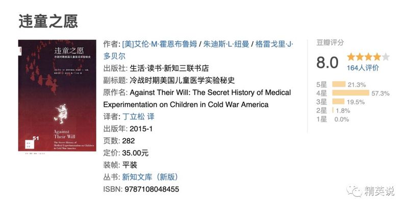 书籍《违童之愿》(Against Their Will: The Secret History of Medical Experimentation on Children in Cold War America)就记录了这样一段残酷而真实的历史。