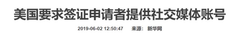 据《新华社》报道,美国国务院以加强安全审查为由,于今年5月31日起,已经开始要求绝大部分美国签证申请人提交个人社交媒体账号信息。