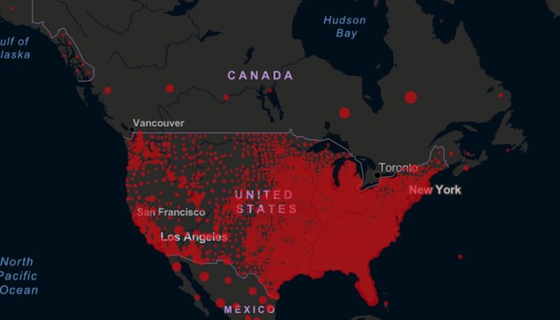 这张来自于约翰霍普金斯的图片阐释了“尽快让经济复苏”,以及“经济生产为重”对公共卫生带来的影响。在加拿大的南边,美国总统特朗普每天喊着重启经济,重开学校,但是目前美国的病例人数,令人感到十分担忧。放眼望去,早已是“祖国山河一片红”了。