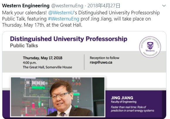 蒋敬(Jing Jiang,音译),加拿大西部大学教授、NSERC高级工业研究会主席,是加拿大核电站容错控制、仪表/控制系统方面的国际知名专家,他的开创性工作从根本上彻底改变了实现安全关键系统的高可靠性、更安全的核电站和更有效地利用可再生能源的方法。他的开创性贡献在世界范围内的学术界和工业界都产生了很大的影响。