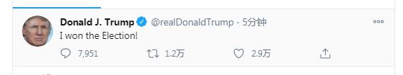 刚刚,美国现任总统特朗普又一次发推称“我赢了大选”。