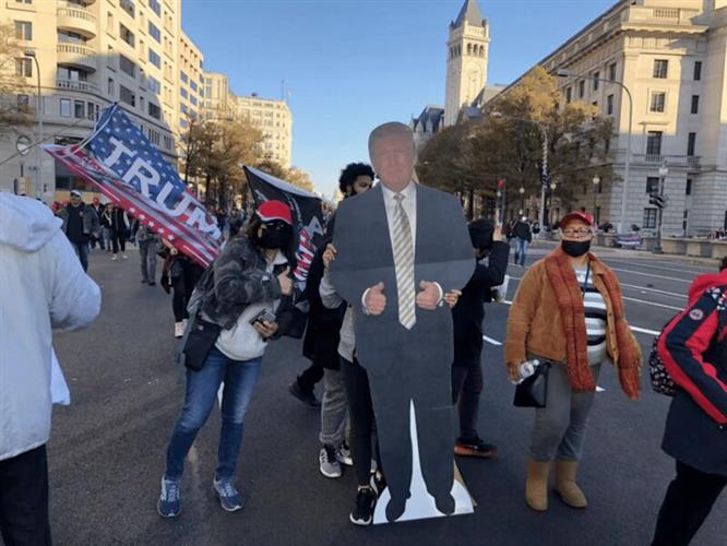 要知道,在华盛顿特区这种地方,92.9%的选民都把选票投给了民主党人拜登,可谓是深蓝得都不能再蓝了。能在如此深蓝的地方组织一场上万名川粉参加的大游行,参加者们必须得从美国其他城市怀揣着一腔热情,千里迢迢赶来华盛顿。