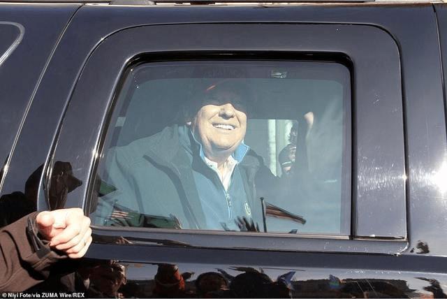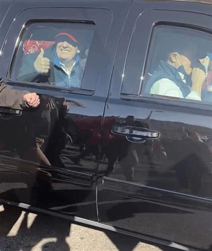 而在车内的特朗普,看到成千上万自己的支持者也更是喜上眉梢。车队经过示威人群时,特朗普还亲切地和自己的铁粉们挥了挥手。