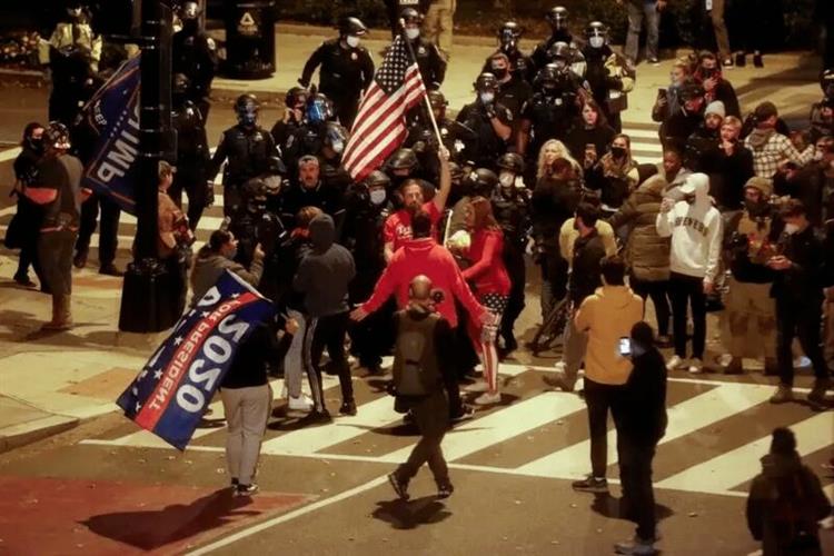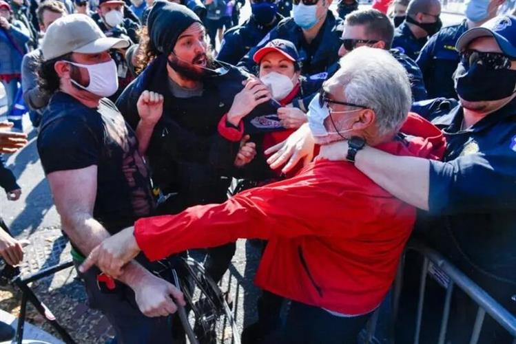当两个不同阵营的团体在华盛顿街头相遇,便针锋相对,最终爆发小规模混战,现场一片混乱。