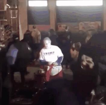 一位身穿Trump周边T恤,站在路边的老人,就莫名其妙地被连人带车地推倒在地。就在他摔倒之后,还有人淋了他一身水。
