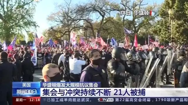 混乱的场景,宛如黑道大片。虽然,警方迅速介入控制住了场面,并将两方人马隔离开来,但直到当地时间15日凌晨,集会和小规模冲突仍在持续。而且,在这些冲突中,警方也逮捕了不少人。据华盛顿警方发布的消息,14日的集会和冲突已导致21人被逮捕,被捕者年龄多在二三十岁,其中还有至少两名女性,另有两名警察受伤。