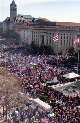 这一场气势宏大的游行活动,被人们称为“百万MAGA游行(MAGAMillionMarch)” “特朗普游行(MarchForTrump)”,甚至“停止偷窃游行”。游行示威人群占据了华盛顿的自由广场,将定制的巨大特朗普旗帜满满地展开来。