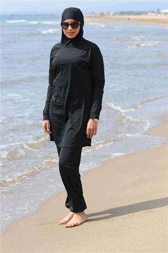 布基尼(因穆斯林女性不能裸露身体而发明的泳衣)是这样的: