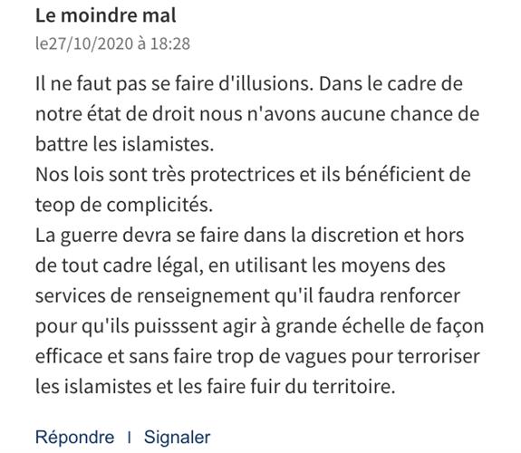 两害取其轻:“我们一定不能抱有任何幻想。在我们的法治框架内,我们没有机会击败伊斯兰主义者。”
