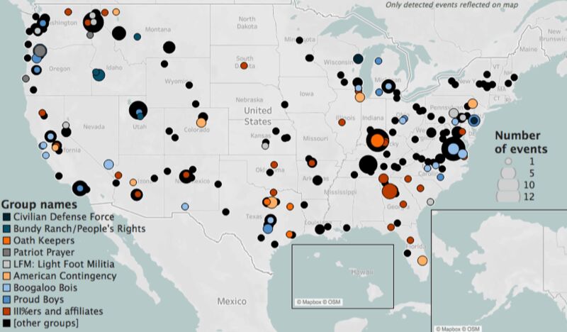 2020年,民兵组织“金刚狼守望者”进行射击和作战训练,甚至自制炸药,打算在11月3日大选日之前将密歇根州州长绑架到安全地点,以叛国罪进行审判,被FBI破获,六人被紧急逮捕。