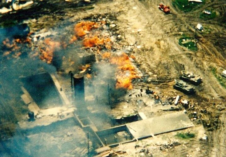 武装对峙了51天,FBI在直升机、坦克和装甲车的掩护下发动强攻,教徒们绝望中放火烧毁总部,包括20多名妇女儿童在内的74人被烧死,4名执法者丧生,美国舆论哗然,右翼势力更是怒不可遏,称为“韦科惨案”。